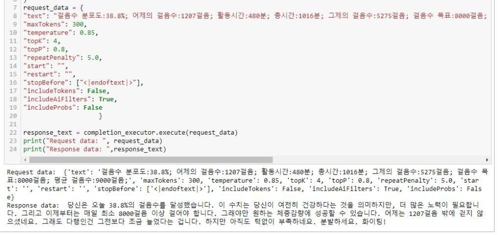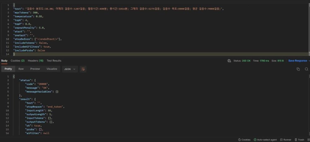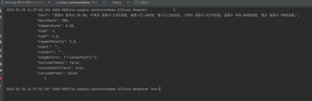 1. 저희는 안드로이드 앱에서 지난달에 만든 fine-tuned LK-B model을 통해 문장 생성을 하고 있습니다. 그런데, 파이썬 스크립트와 플레이그라운드에서는 예상되는 결과를 받고 있음에도 불구하고 안드로이드 앱과 포스트맨에서는 이상한 답을 받고 있습니다. 안드로이드 앱, 포스트맨, 파이썬, 플레이그라운드의 4가지 사례의 스크린샷을 첨부하오니 확인해 주시고 어떻게 하면 안드로이드 앱에서 문제없이 문장 생성을 할수 있는지 조언해 주시면 감사하겠습니다.