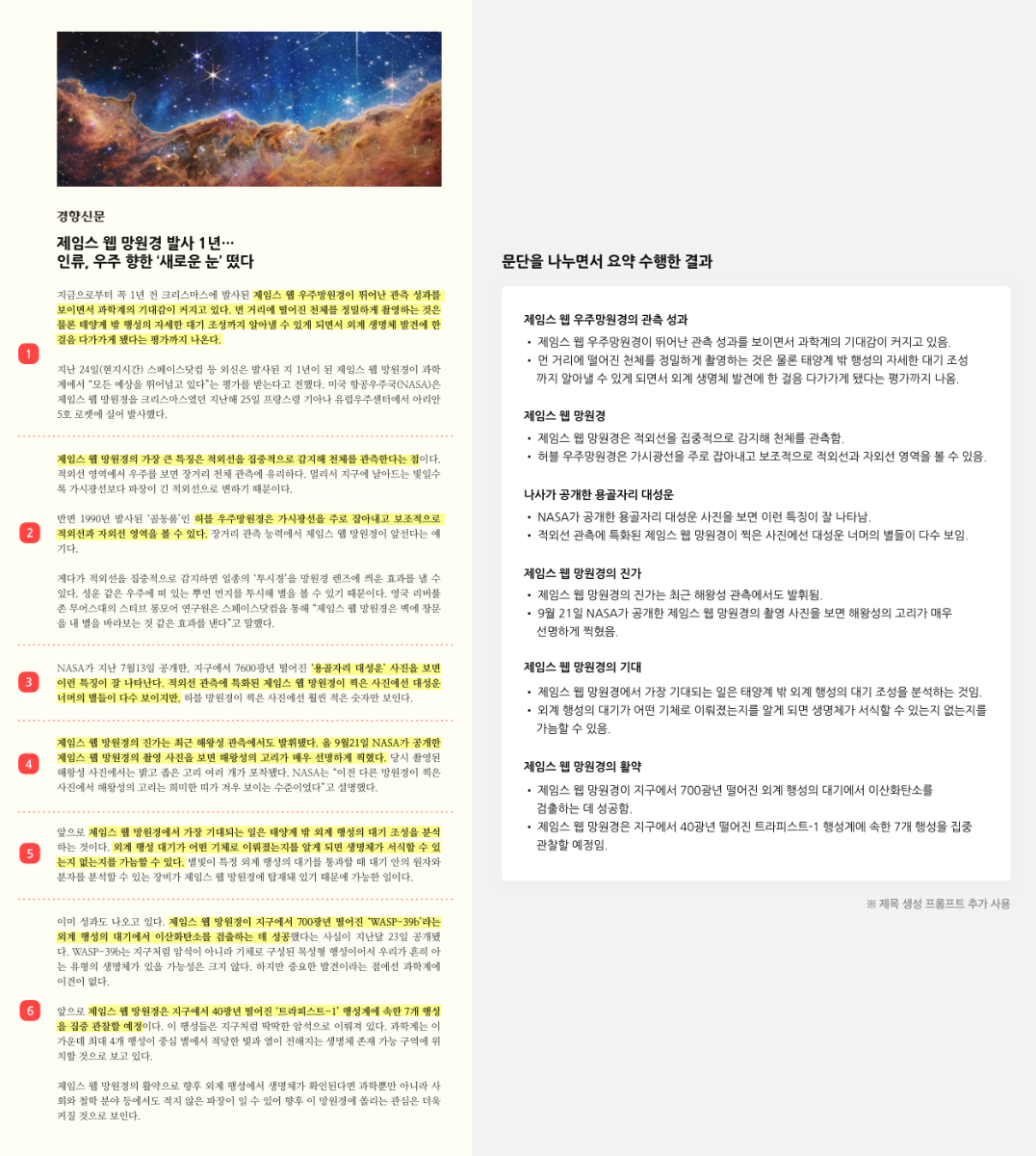 ※ 본 포스팅은 하이퍼클로바 언어모델에 대한 내용입니다. 하이퍼클로바 언어 모델을 공개한 이후 터득해 온 저희의 여러 가지 프롬프트 노하우를 알려드리겠습니다. 1. 프롬프트의 예제를 다양하게 구성하세요. 프롬프트의 유형은 크게 세 가지가 있습니다. 예제를 구성하지않고 요청하는 zero-shot 프롬프트, 하나의 예제로 구성하는 one-shot 프롬프트, 여러 개의 예제로 구성하는 few-shot 프롬프트가 있습니다. 우리는 이것을 In-context learning이라고 부릅니다. 적절한 예제의 개수는 작업에 따라 달라질 수 있으며, 모델이 잘 이해하는 작업의 경우 3~4개의 예제만 넣어도 잘 수행합니다. 프롬프트에 예제를 몇 개나 넣어야 하는지 궁금해하시는 분들이 많이 계시는데요. ▼ 예제는 무조건 많이 넣어주기보다는 모델이 다양한 케이스에 대한 패턴을 파악할 수 있도록 구성하는 것이 효과적입니다. 원하는 결과가 나오지 않을 때는 예제를 다시 점검해보고 모델에게 정확히 가르쳐주세요. 2. 모델이 출력할 항목을 정확히 지정하세요. 모델이 출력할 결과에 대한 항목을 정확히 지정하는 것이 도움이 될 수 있습니다. ▼ 예를 들어, [항목:] 또는 {검정 분류}와 같은 형식을 말합니다. 이 방법은 튜닝을 위해서 데이터셋 구축하는 데에도 유용하게 쓰일 수 있습니다. 3. 컨텍스트 정보를 활용해보세요. 계절감 ▼ 계절감 있는 출력결과가 나오게 하고 싶으면, 예제에 날짜나 시즌 어휘를 추가해주세요. 초대규모 언어모델은 학습된 날짜까지만 답을 할 수 있으며, 오늘 날짜와 현재 시간은 어떤지 현실 세계와의 연결이 되어있지 않습니다. 시간축을 넣는 것으로 모델에게 시간에 대한 힌트를 줄 수 있습니다. 단, 시즌, 계절감 처럼 넓은 범위의 기간 형태로 쓰일 수 있을 것이며, 정확한 시간을 기준으로 연산에는 부정확할 수 있습니다. 대상자 지정 ▼ 대상자를 지정해두는 것이 좋을 수도 있습니다. 대상자를 넣어줌으로써 대상자를 정확히 인식하면서 문장의 목적을 구체화 시키는 것이죠. 이외에도 컨텍스트 정보는 다양하게 활용할 수 있습니다. 4. 지시문을 넣어주세요. ▼ 프롬프트 앞에 명료하게 지시문을 적어주면 작업의 성능이 향상될 수 있습니다. ▼ 지시문은 최대한 쉽게 풀어서 단순하고 명료하게 작성해 주세요. ▼ 그리고 지시문을 쓸 때 예제 항목에 쓰인 단어를 함께 넣어서 연관성을 높여보세요. 지시문과 항목의 관계성을 높이는 것이죠. 단, 지시문은 복잡한 조건을 보장하지 않기 때문에, 여러 개의 복잡한 조건을 거는 것은 효과적이지 않을 수 있습니다. 5. 지시문에는 부정문보다 긍정문을 사용해주세요. 부정문보다는 긍정문을 사용해보세요. “정중하지 않게 쓰지 않습니다.”보다는 “정중하게 씁니다”, “길지 않게 설명합니다.”보다는 “짧게 설명합니다.”와 같이 최대한 풀어서 설명해서 명료해지는 것이죠. 언어모델은 기본적으로 생성해 내려는 특성이 있다보니, ‘~하지 마세요’처럼 제한을 거는 것 보다는, 긍정적인 방향으로 허용하는 형태가 나을 수 있습니다. 6. 지시문과 예제를 섞어보세요 지시문이랑 예제를 어우러질 수 있도록 하는 것이 효과적일 수 있습니다. 예제를 나열하면서 시퀀적인 패턴으로 인식하게 하는 것보다는 독립적인 구성이 될 수 있도록 하는 것이죠. 7. 단조로운 예제를 바꾸어보세요. 예제가 단조로우면, 실행 결과도 단조로울 수 있습니다. 이때는 Temperature를 아무리 높여도, 문장의 창의성이 더해지지는 않아요. ▼ 상품 큐레이션에 사용할 수 있을만한 감도 깊은 광고 카피들로 구성하면, 언어 모델이 생성하는 결과의 품질이 달라집니다. 8. 키워드로 모델에 변수를 부여해보세요. ‘키워드’에 어떤 분위기나, 단어를 지시함으로써, 더욱 원하는 느낌의 결과가 나오게 할 수 있습니다. 이런 방법을 가지고, 모델을 통제하고 제어할 수 있기도 합니다. 이때 키워드는 아무 키워드나 쓰지 않고, 키워드와 문구를 어느정도 매핑시키는 형태로 예제를 구성하는 것이 좋습니다. 9. 낯설게, 불편하게 조합해보세요. 어울릴 거 같지 않은 두 단어를 조합해 보세요. 새로운 조합을 통해 참신하고 주목도가 높은 문장이 만들어질 수 있습니다. AI는 기계적인 학습을 통해 언어를 이해하고 생성하기 때문에, 사람처럼 감정을 직접 체험하거나 경험할 수는 없습니다. 하지만 한국어에 특화된 하이퍼클로바 언어모델은 언어 데이터에서 아주 섬세한 감성적인 뉘앙스를 파악하고, 단어와 단어 상의 관계성이나, 문맥, 어조를 고려해서, 문장을 만들어 낸다는 특징이자 강점이 있습니다. 하이퍼클로바 언어 모델은 이러한 부분에서 여타 AI에 비해 전혀 밀리지 않고 있습니다. 이외에도 프롬프트를 다룰 수 있는 다양한 노하우가 존재합니다. 여러분의 프롬프트 노하우는 무엇인가요? 하이퍼클로바 노하우는 여기서 마무리하도록 하겠습니다. 곧 안내드릴 하이퍼클로바X 모델의 활용 팁도 기대해주세요!