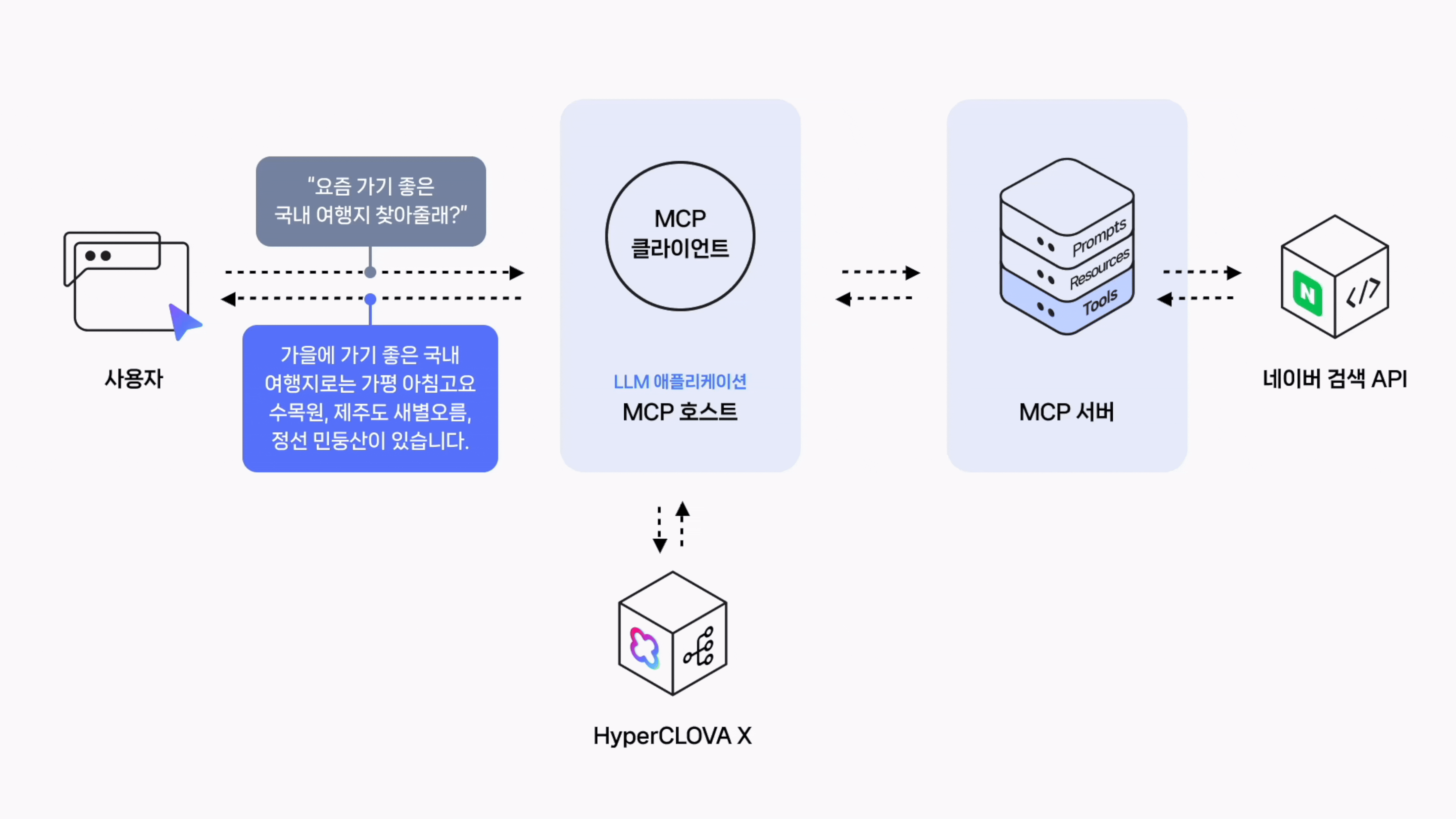 본 쿡북은 이러한 흐름에 맞춰, CLOVA Studio에서 제공하는 모델을 MCP 서버와 연동해 에이전트 환경에서 활용하는 방법을 중심으로, 실무에 바로 적용할 수 있는 구현 가이드와 실전 팁을 함께 제공합니다.